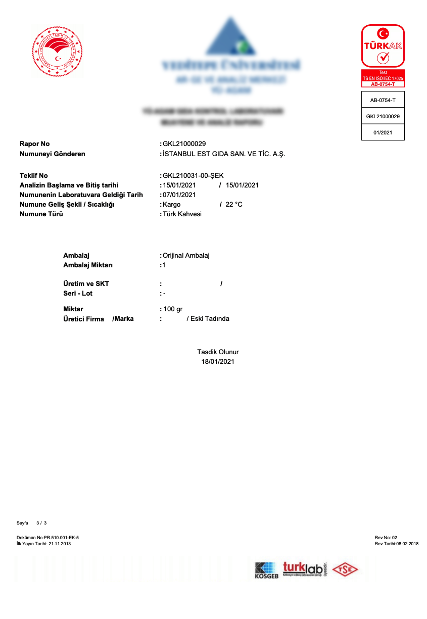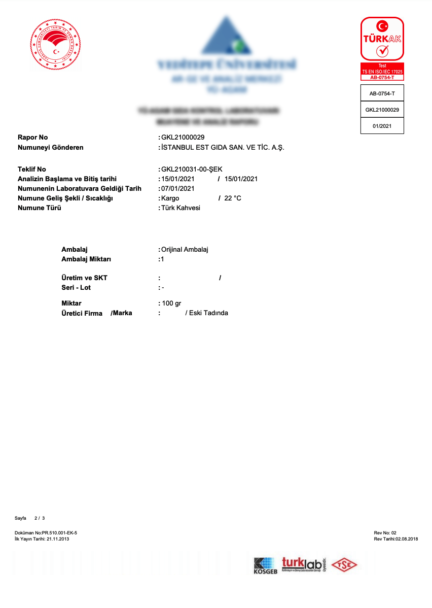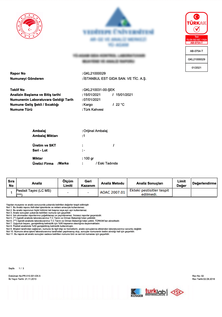 Az Şekerli Fındık Ezmesi Pestisit Testi2021 Aralık