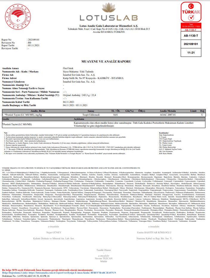 Tarhana Çorbası Pestisit Testi2021 Aralık