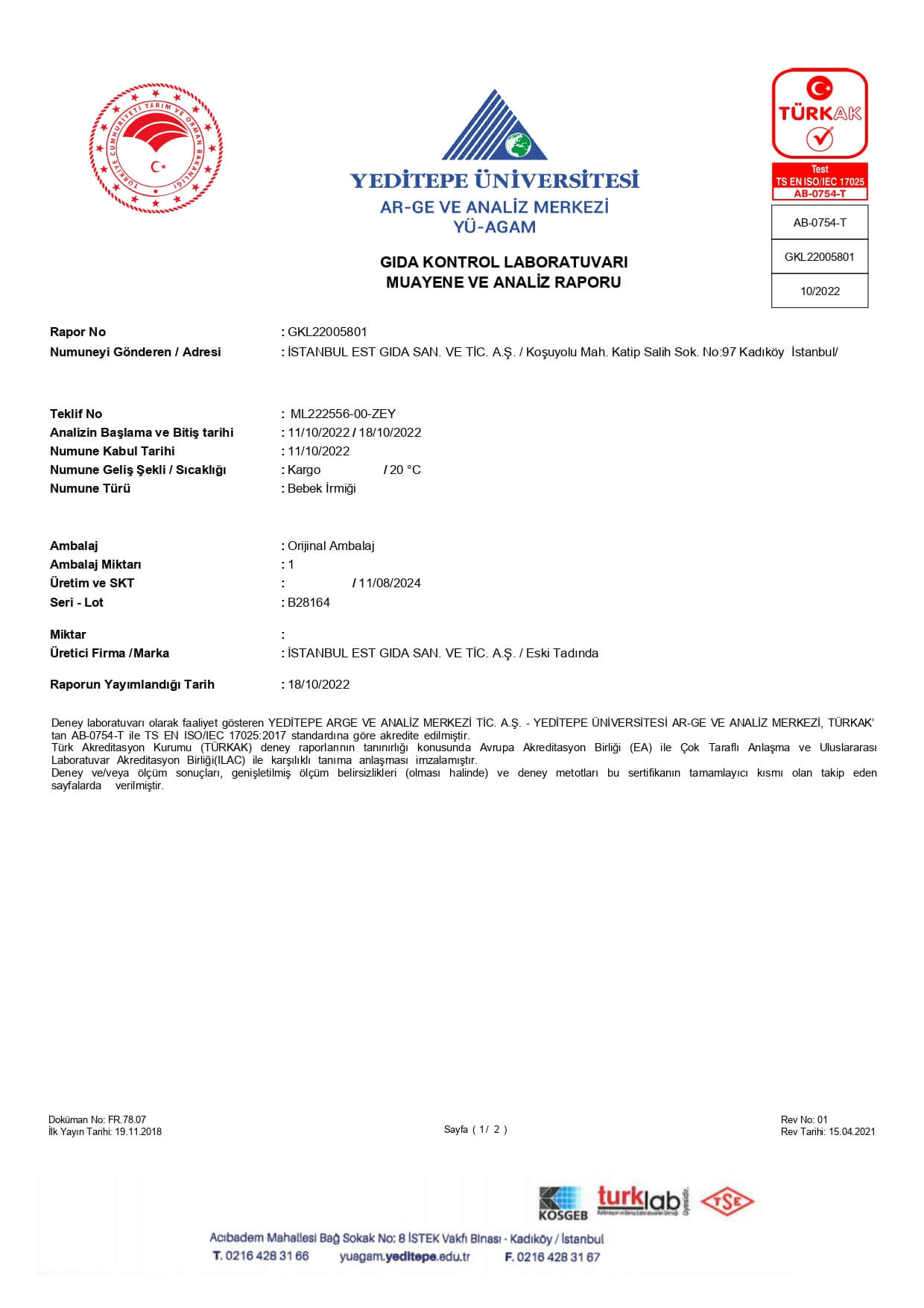 Bebek İrmiği Pestisit Testi2022 Ekim