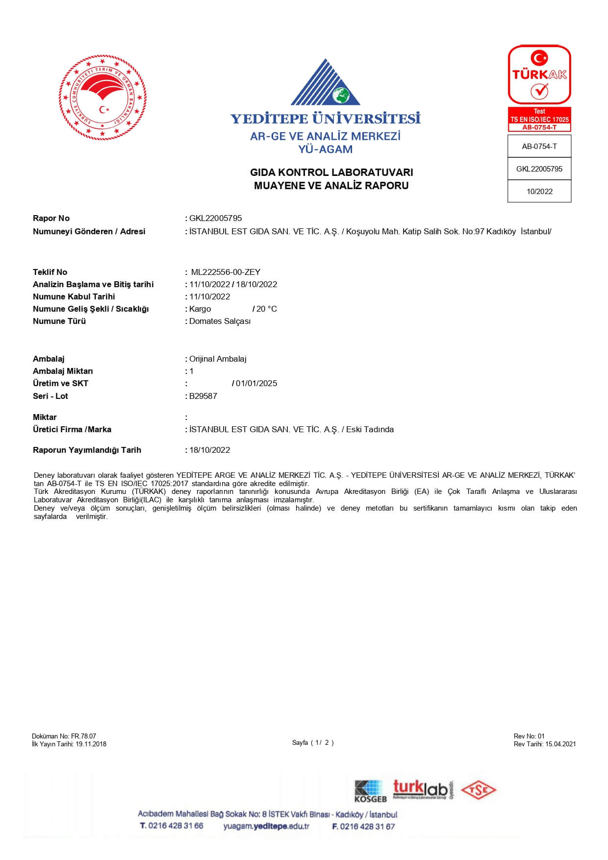 Tatlı Biber Salçası Pestisit Testi2022 Ekim