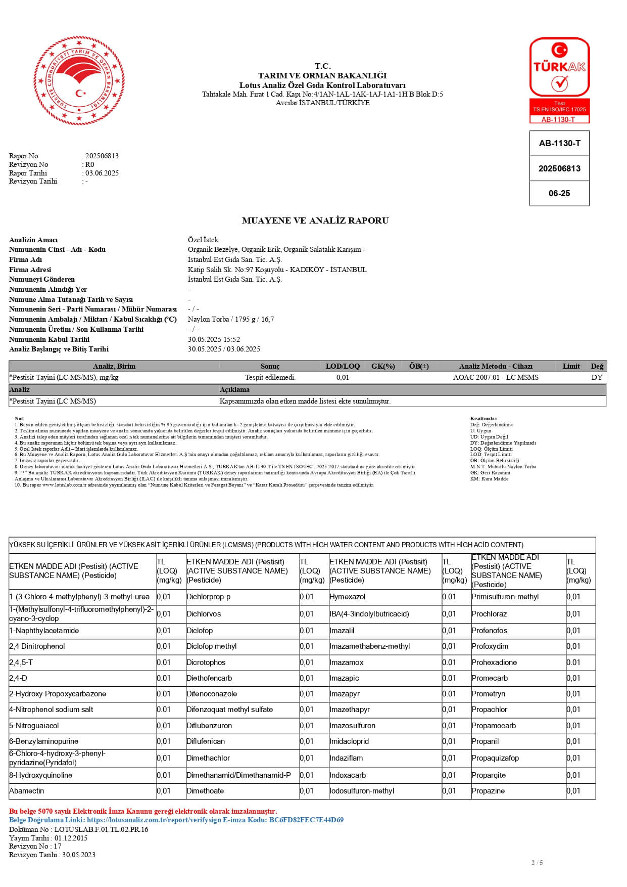 Organik Greyfurt Pestisit Testi2024 Aralık