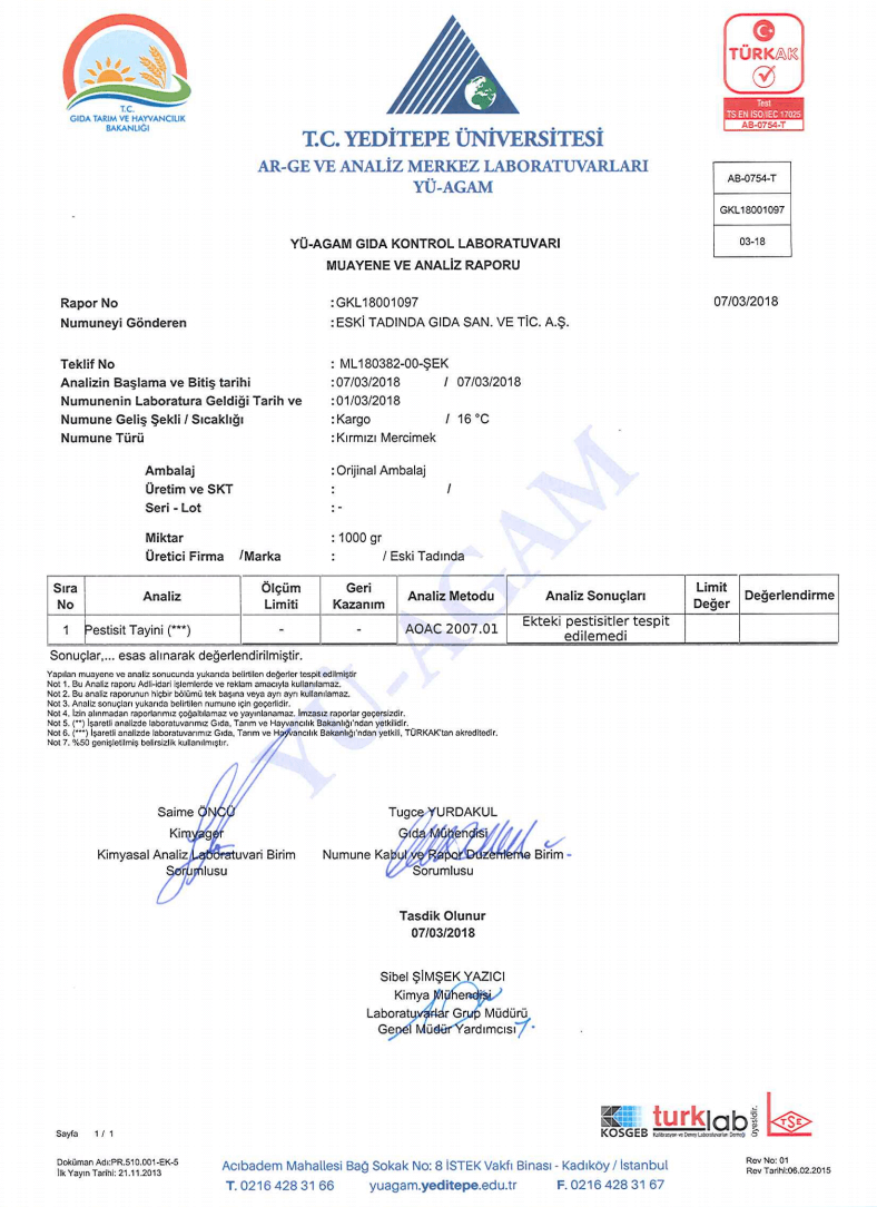 Kırmızı Mercimek Pestisit Testi2018 Mart